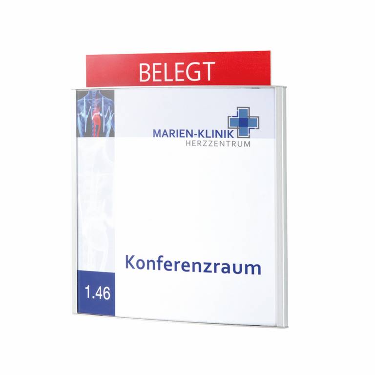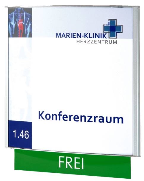 Personnalisable par vos soins par simple papier imprimé à insérer derrière la face plexi anti-reflet (amovible par ventouse).