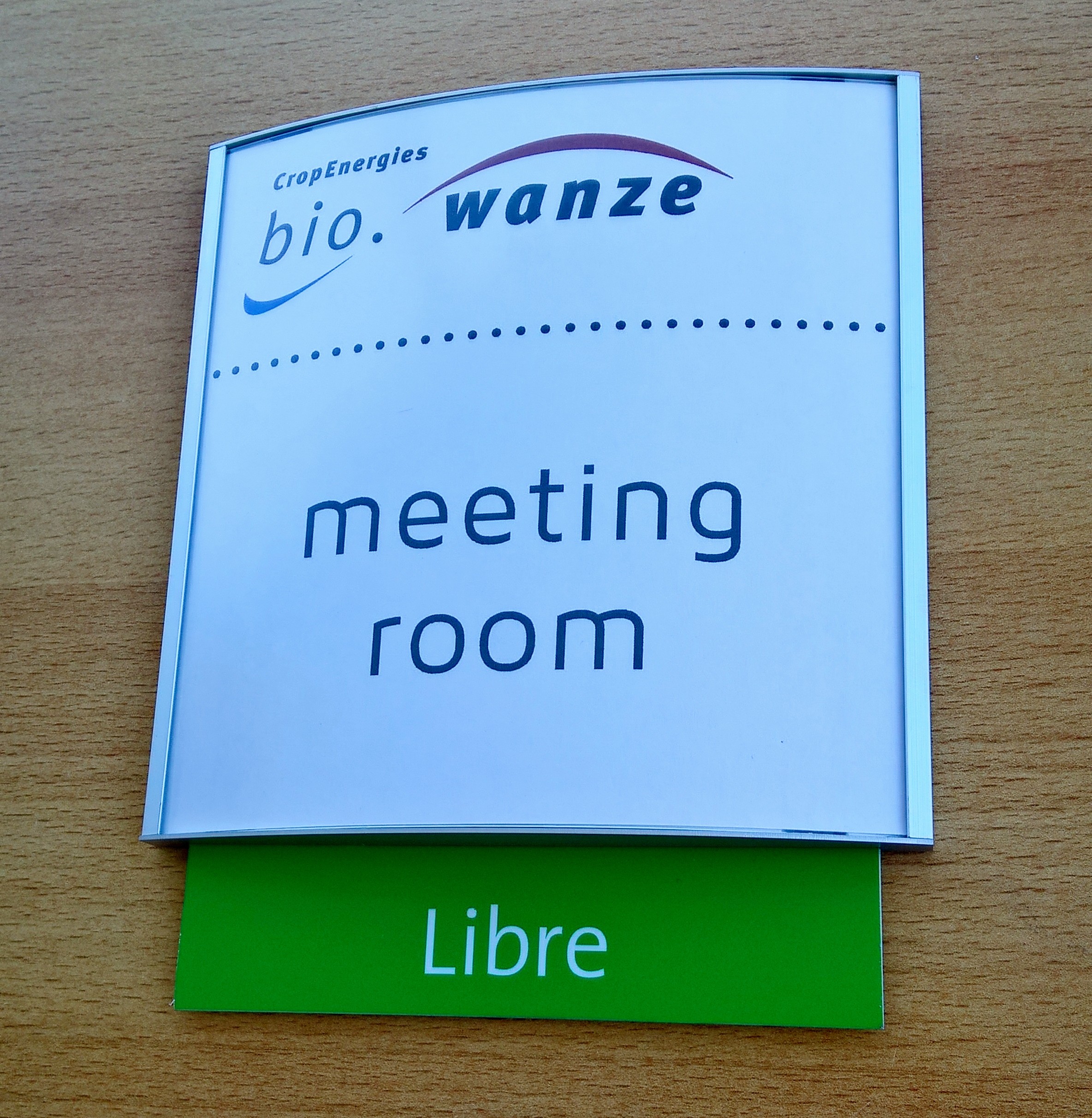 Plaquette galbée ATLANTYS ; textes "Libre / Occupé" sur plaquette coulissante.