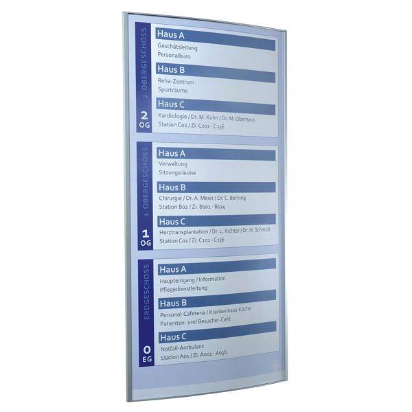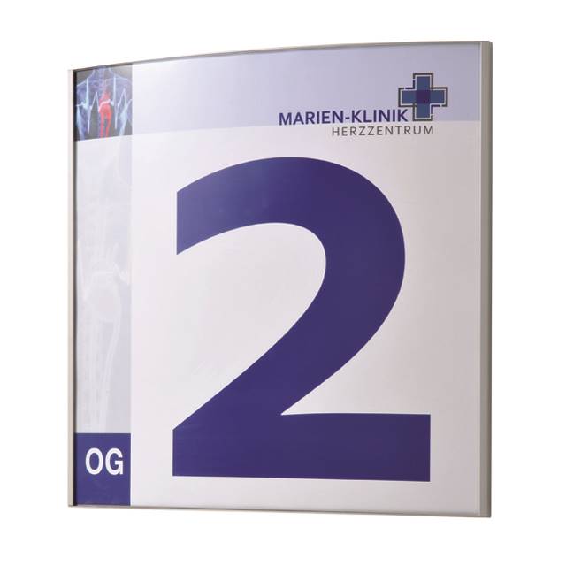 ATLANTYS est une solution complète de signalétique avec son profil légèrement courbé en aluminium, ses capots latéraux en aluminium, des arêtes droites et élégantes et une finition de haute qualité. Le support est facilement personnalisable par l'imprimé que vous pouvez insérer en retirant la face anti
