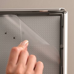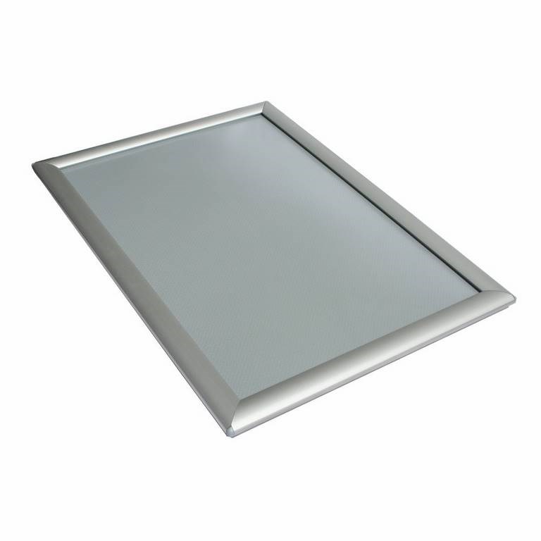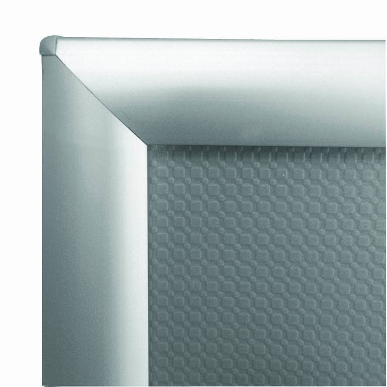 Cadre esthétique avec les 4 côtés ouvrant pour enlever l'anti-reflet et insérer votre imprimé. La finition est en aluminium anodisé argent. Les coins sont arrondis.