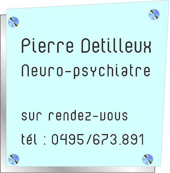 plaque professionnelle de la gamme CREATYS en plexi 10mm avec film sablé au dos; sous-plaque murale en alu brossé; montage sur écarteurs inox diam 13 mm