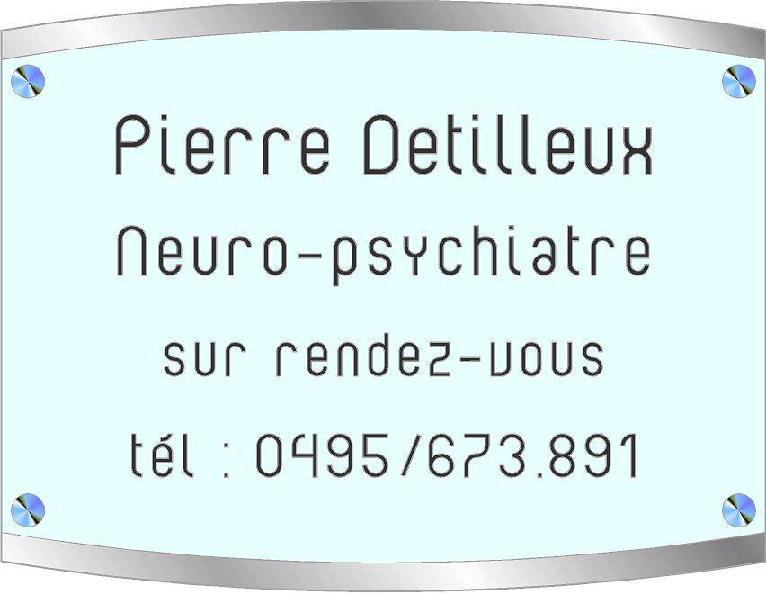 plaque professionnelle de la gamme CREATYS en plexi 10mm avec film sablé au dos; sous-plaque murale en alu brossé; montage sur écarteurs inox diam 13 mm